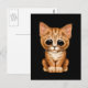 Ledsen Cute Orange Tabby Kitten Cat on Black Vykort