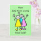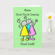 Illustration av tre personer som gråter och vinkar. Pastellfärger i grönt, rosa, blått och gult. Anpassa detta kort enkelt genom att redigera malltexten. Kortet säger 'Namn ledsen att du lämnar' och 'Lycka till' och på insidan 'Du kommer att saknas'.