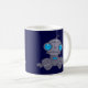 Vector tecknad illustrerar en söt, men ledsen liten robot med blå ögon sitta på golv.