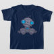 Vector tecknad illustrerar en söt, men ledsen liten robot med blå ögon sitta på golv.