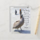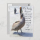 En duva och en pelikan. Pelican tittar på duvorna. Underbart kort för " Förlåt, förlåt mig, saknade dig, Säker resa.