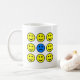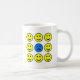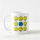 Ledset ansikte i en folkmassa av lycklig kaffemugg