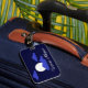 Leende fullt måne med moln: Mörk blått Bagagebricka