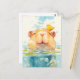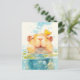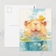 Leende Kapybara som simmar med liten gul fågel Vykort