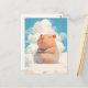 Leende Kapybara som sitter på mjuk vit moln Vykort