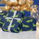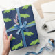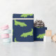 Roligt grönt alligator på en marin blå bakgrund mönster.
