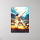 Denna dynamiska idrottskonst fångar det spännande ögonblicket av en legendarisk hemmaplats, och blandar kinematografisk action, explosiv rörelse och levande färger. En djärv hyllning till basebollens största ögonblick, detta moderna konstverk är perfekt för sportfans, samlare och spelrumsdekor, som firar passionen för spelet i varje detalj.
