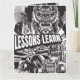 This design shows a Gorilla standing over a city and buildings with an antique car in the front with the written words LESSONS LEARN and quote below.