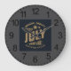 Keep track of time with this legends are born in july wall clock. This stylish timepiece features the bold gold and navy vintage design as the clock face, making it a functional piece of birthday decor. Perfect for a home office, kitchen, or workshop, this clock is a great gift for the july legend who appreciates unique home accessories. The silent movement ensures it looks great without any distracting ticking.