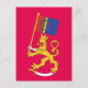 Suomileijona liputtaa Saamen lipulla alkuperäiskansamme saamelaisten kunniaksi postikortissa. Finlands lejon med Samelands flagga.
