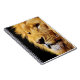 Den här bärbara datorn har en manlig lejon som visas på den.