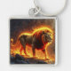 Lejon av flammor som brinner i vulkanen. fyrkantig silverfärgad nyckelring