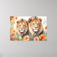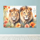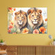 Lejon Blommigt och vattenfärgsfärgskonst Canvastryck