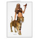 Den här designen har en fantastisk bild av en vacker gammal krigshererdrottning som tar en promenad med sina kamrater, en gyllene lioness och en liten röd fågel.