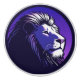 Porträtt av en lejon i lila stil som var populär på 1980-talet.
