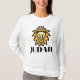 Denna kvinnas långärmad har en design som präglar ord Judah i ett fet, unikt tryckteckensnitt med svart brev och som visar en bild av tecknad stil av en lejon huvud med kung krona i centrum i detta trosbaserade citattecken. Denna garanti är bekväm, avslappnad och lös montering, tillverkad av 6,0 oz, 100-procentig bomull före krympning, med dubbla-nål sydda grund och sleeve för att våra garantier ska passa och ha gott om sig på alla och alla.