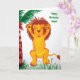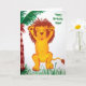 Målning av en lycklig som är lejon med palmträdet för någon ålderfödelsedag.