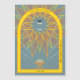 En geometrisk Lejon av judahstammen roar sig som baby Jesus i en manger hiss på hans lilla händer.