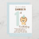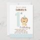 Lejon inbjudan första födelsedag (blå)