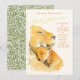 Försiktig inbjudan till gult med vattenfärgen baby lejont och hans mamma längst fram och med grönt löv i bakgrunden. Den milda beröringen av safari, perfekt för att välkomna en nyfödd.