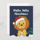 Lejonet för julkort. Roliga djur med presenter och snö för högtiderna. Även roligt för jul i juli. Lejon är söta djur och perfekta för jul.