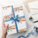 Den vita vattenfärgen mönster har en lejon flygning i ett flygplan.