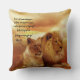 Kunglig lejon och lejoninna kastkudde, skriftställe Josua 1:9 "Har jag inte befallt dig? Var stark och modig; var inte rädd eller modfälld, för Herren din Gud är med dig vart du än går.” Bakgrund i nyanser av brunt och guld! Ett uppmuntrande skriftställe för en kristen att göra till sin i livet!