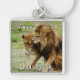 Lejon och lioness fyrkantig silverfärgad nyckelring