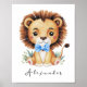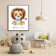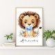 Lägg till en lekfull och äventyrlig touch i din lilla enas rum med denna charmiga lejon safari rumsaffisch! Med en söt akvarellbebis-lejon som bär en blå slips, är denna väggkonst perfekt för ett safari-temat babysängsrum, en djungel för småbarn eller ett boho safari-lekrum. Du kan anpassa affischen med ditt barns namn, vilket gör den till ett extra speciellt tillägg till vilken pojkrum som helst eller en genomtänkt souvenir till en babyfest eller födelsedag. Med sina mjuka, jordnära toner och glada design kompletterar denna dekoration pojkars safari-rum, könsneutrala djungelrum eller mysiga läshörnor, vilket ger värme och glädje till varje hörn.