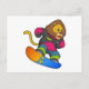 Lejon som snowboardåkare med snowboard vykort