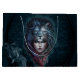 Lejona hjärt- och femininstyrka, en majestätisk fusion. Detta är ett slående porträtt om en kvinna vars utseende kompletteras av en sömlös fusion med huvudet på en majestät lejon. Kvinnan har en fin hud och en skarp grönt ögon, som är inramad av ett känsligt vitt mönster och som betonar hennes uttrycklighet. Hennes hår är utformat för att sömlöst blanda in lejona i mane, en flytande union som skapar intrycket att de är en. Den lejona färgen målas i blått grått-toner och ger bilden en stark närvaro, medan den lejona piercing ögon ger en stark blick.