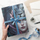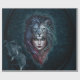 Lejona hjärt- och femininstyrka, en majestätisk fusion. Detta är ett slående porträtt om en kvinna vars utseende kompletteras av en sömlös fusion med huvudet på en majestät lejon. Kvinnan har en fin hud och en skarp grönt ögon, som är inramad av ett känsligt vitt mönster och som betonar hennes uttrycklighet. Hennes hår är utformat för att sömlöst blanda in lejona i mane, en flytande union som skapar intrycket att de är en. Den lejona färgen målas i blått grått-toner och ger bilden en stark närvaro, medan den lejona piercing ögon ger en stark blick.