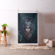 Lejona hjärt- och femininstyrka, en majestätisk fusion. Detta är ett slående porträtt om en kvinna vars utseende kompletteras av en sömlös fusion med huvudet på en majestät lejon. Kvinnan har en fin hud och en skarp grönt ögon, som är inramad av ett känsligt vitt mönster och som betonar hennes uttrycklighet. Hennes hår är utformat för att sömlöst blanda in lejona i mane, en flytande union som skapar intrycket att de är en. Den lejona färgen målas i blått grått-toner och ger bilden en stark närvaro, medan den lejona piercing ögon ger en stark blick.