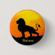 Vild lejon silhuett, soluppgång och kalligrafi på en djungelknapp. Idealisk för naturen älskare!