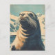Dö in i havets karm med det här vykortet vintage-stil som har en graciös lejon sjö. Genom att ha fångat bad på sten vid kusten eller genom att leka i vågarna visar denna utformning hur eleganta och lekande dessa marina däggdjur är. Perfekt för samlare, sjöentusiaster, eller som en tankefull gåva, firar detta vykort den tidlösa allmosor som livet till havs utgör.
