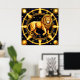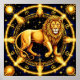 Illustration av en lejon som symboliserar Leo zodiac-tecknet, omgiven av celestial inslag, zodiakikoner och en kosmisk bakgrund, som reflekterar astrologi och stjärnelegans.
