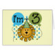En söt lejon i en party-hatt, blå och grönt polka dots och ballonger, och text som lyder "I'm 3" finns på söta 3:e Lejona födelsedagstjockar, mugg, magneter, kort, klistermärken med mera.
