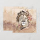 Vacker akvarell Lejon med blomsterelement.