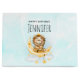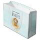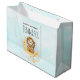 Stor presentväska med en söt illustration av vattenfärg. En berömvärd lejon som har krona som fiskar efter stjärnorna sitta på ett halvmånigt måne vilar på ett fluffmoln. Magisk fantasi. Ljusblå vattenfärgsbakgrund.