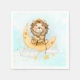 Pappra blöjor med en söt illustration av vattenfärgen. En berömvärd lejon som har krona som fiskar efter stjärnorna sitta på ett halvmånigt måne vilar på ett fluffmoln. En massa faux guld-folie stjärnor vid molnen ge, detta är en magisk känsla. Ljusblå vattenfärgsbakgrund.