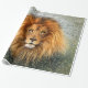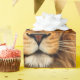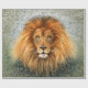 Slut upp av en lions ansikte med olika kulöra stjärnor som en bakgrund. Lejon konstmålning fotograferar grafiskt avbildar.