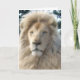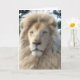 Kung i Jungle. Födelsedag med en vacker, majestät, karamel och gräddvit färgad lejon mot bakgrund av träd. Hälsning-kort med anpassade oljemålning stil-design som du kan anpassa med din egen text, bilder och dina idéer. Skapat med originalfotografier och digitala effekter av Jess Perry.
