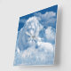 Lejont och lamm i himlar med molnväggklocka.