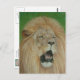 Denna lejona bild har framställts av en originalmålning av mjuk pastel från mig, som ingår i min samling av målningar för vilda djur och växter. Originalmålningens titel är "Jag är Kung!" eftersom han är ett så underbart exempel på en stor katt, men jag kände att han också var en ledsen varelse och ändå regnar han med poise och värdighet. Jag försökte visa känslan i hans själsliga ögon, men det är hans fantastisk mane som jag tyckte om att måla mer än något annat, men jag älskade faktiskt att måla varenda bit av detta underbara lejona kung. Jag tänka detta vackra lejon ser underbar ut på vykortet. Detta modiga lejon målades från ett foto av typen efter tillstånd från Big Cat Rädding.