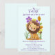Denna baby shower-inbjudan visar en älskvärd lejonunge som väntar på sin mamma och ger en charmig och glad touch till inbjudan av vänner och familj att fira den blivande mammans speciella tillfälle.