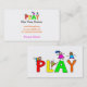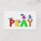 Gullig tecknadillustration av pyser och flickor som klättrar över jätte- brev av alfabetet som stavar ut ord LEK. Avbilda tillgängligt på olika gåvor och produkter. Personifierade visitkortar.