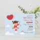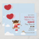 Barnslig en valentin partyinbjudan som presenterar en le flicka på ballonger för ett gungainnehav och leker cupiden. (FP)