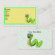 Det här affärskortet är gult av blek med ett vitt gräns med pulserande polka dots av grönt och en leende tecknad orm som är en stark grönt och gult. Anpassa informationen på framsidan och baksidan med mallarna.