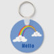 En roligt nyckelring med en lycklig-regnbåge. Kan användas som dragkraft eller som märkre eller påse eller ryggsäck, ha ett leende var du än går. Hejen kan ändras till ett namn om så önskas.