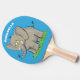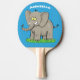 Lekande, roligt elefant med fågel på skräppost tec pingisracket